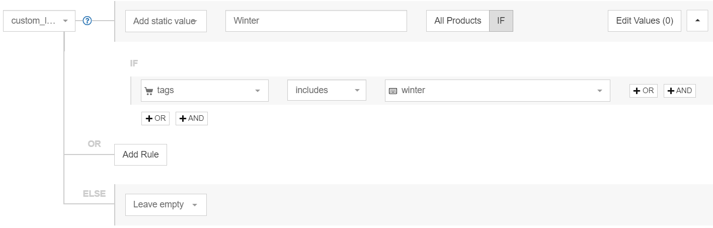 Certains produits fonctionneront nettement mieux dans une saison que dans une autre. La création d'étiquettes personnalisées avec des flux supplémentaires est donc bénéfique pour les produits que vous ne souhaitez pas afficher toute l'année.