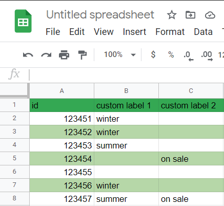 Pour les flux volumineux: créez une feuille de calcul Google avec vos types de produits et vos ID de produit, puis ajoutez le type de produit dans un champ facultatif. Si vous souhaitez en savoir plus sur l'optimisation de vos flux de produits avec Google Spreadsheets, nous sommes là pour vous.